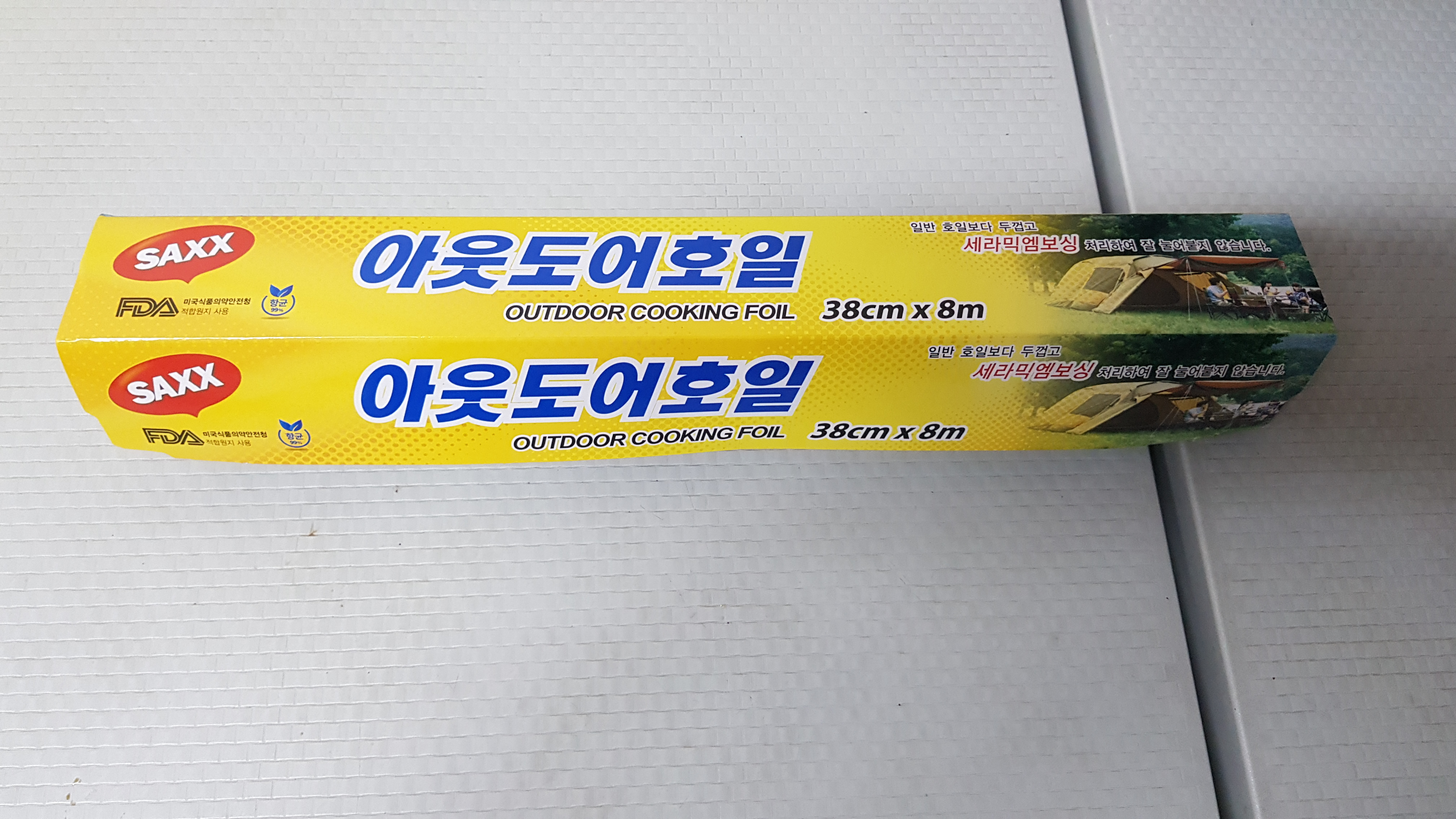 홈플가니 아웃도어 호일이라고 좀 더 두껍다고 써있네요 FDA인증도 받았네요 고기 꾸어먹을 것 도아니니 인증따위 필요없지만 두껍고 젤 저렴하길래 겟합니당~