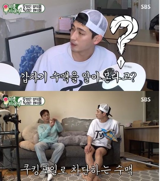 미우새의 오민석이 윤박의 집에 놀러 갔다가 수맥 맹신론을 펼친 장면이네요 ~